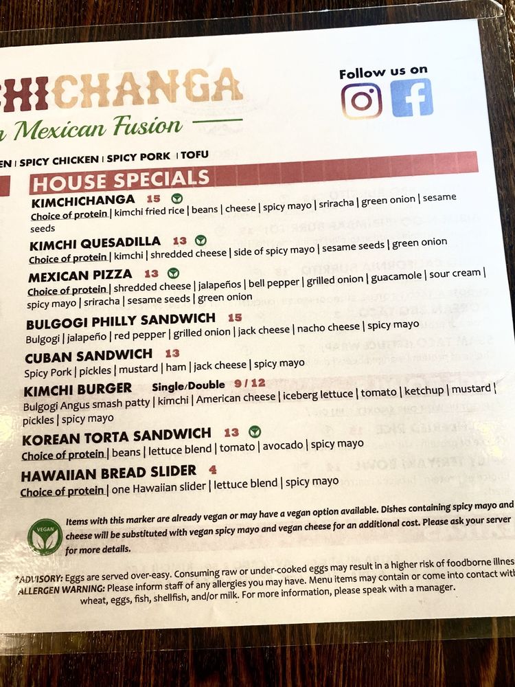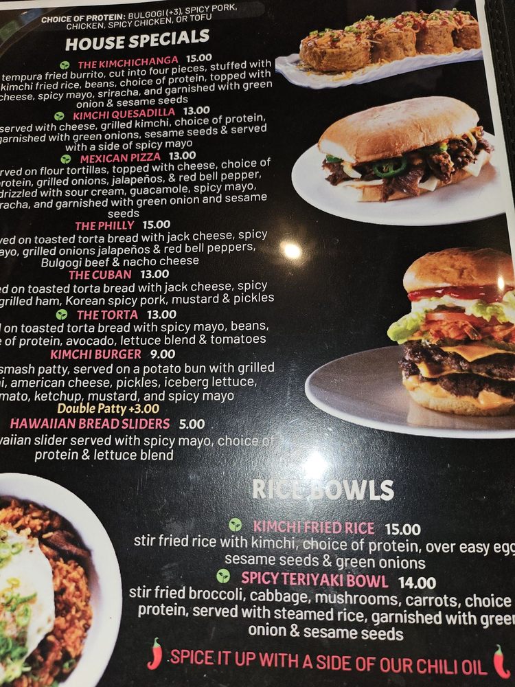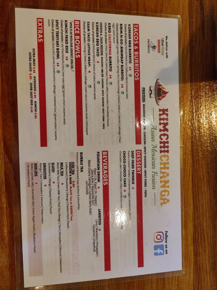 Introducing Kimchichanga, a vibrant restaurant located at 1223 University Ave Ste 140 Riverside, CA 92507. This eatery offers a range of dining options, including vegan and vegetarian choices, making it a versatile spot for all. With amenities like outdoor seating, wheelchair accessibility, and free Wi-Fi, Kimchichanga ensures a comfortable dining experience for every guest. The menu boasts delicious items like mushroom poppers and bulgolgi burritos, showcasing a fusion of Korean and Mexican flavors. Customers rave about the flavorful dishes and friendly service, making it a must-visit destination for those craving unique and tasty food combinations. The atmosphere at Kimchichanga is inviting and perfect for casual gatherings or a quick bite. Experience the culinary creativity and warm hospitality of Kimchichanga today.
